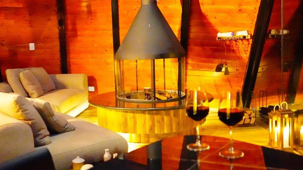 Chalé Spa com decoração de alto padrão pensado para curtas e longas estadias . Perfeito para casais , pessoas viajando sozinhas e família . Estrutura para até 4 pessoas . Ficamos a apenas 15 minutos de carro do centro turístico Capivari . O melhor custo benefício , de um chalé com spa privativo integrado à natureza O espaço : 110 m2 - Lareira -Wifi 250 mb -Check in personalizado -Sauna seca - Jacuzzi para 6 pessoas - Banho sensorial - Tv 85 ‘’ - Cama Super King - Cozinha compacta com microondas - Ar condicionado - Ducha sensorial - Rede externa suspensa - Móveis italianos Dunelli - 1 suite - Sala de estar - 2 banheiros - Sofá cama Serviço de Check-in personalizado , com apresentação do chalé , e comunicação de fácil acesso. Traga apenas suas malas , o resto estará pronto para você